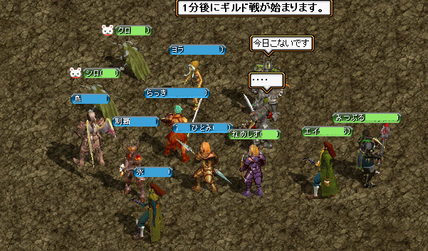 「らっ隊」の壁・峠とも言える「ブッ殺助」さんとのギル戦ですが、遅刻者多数^^;